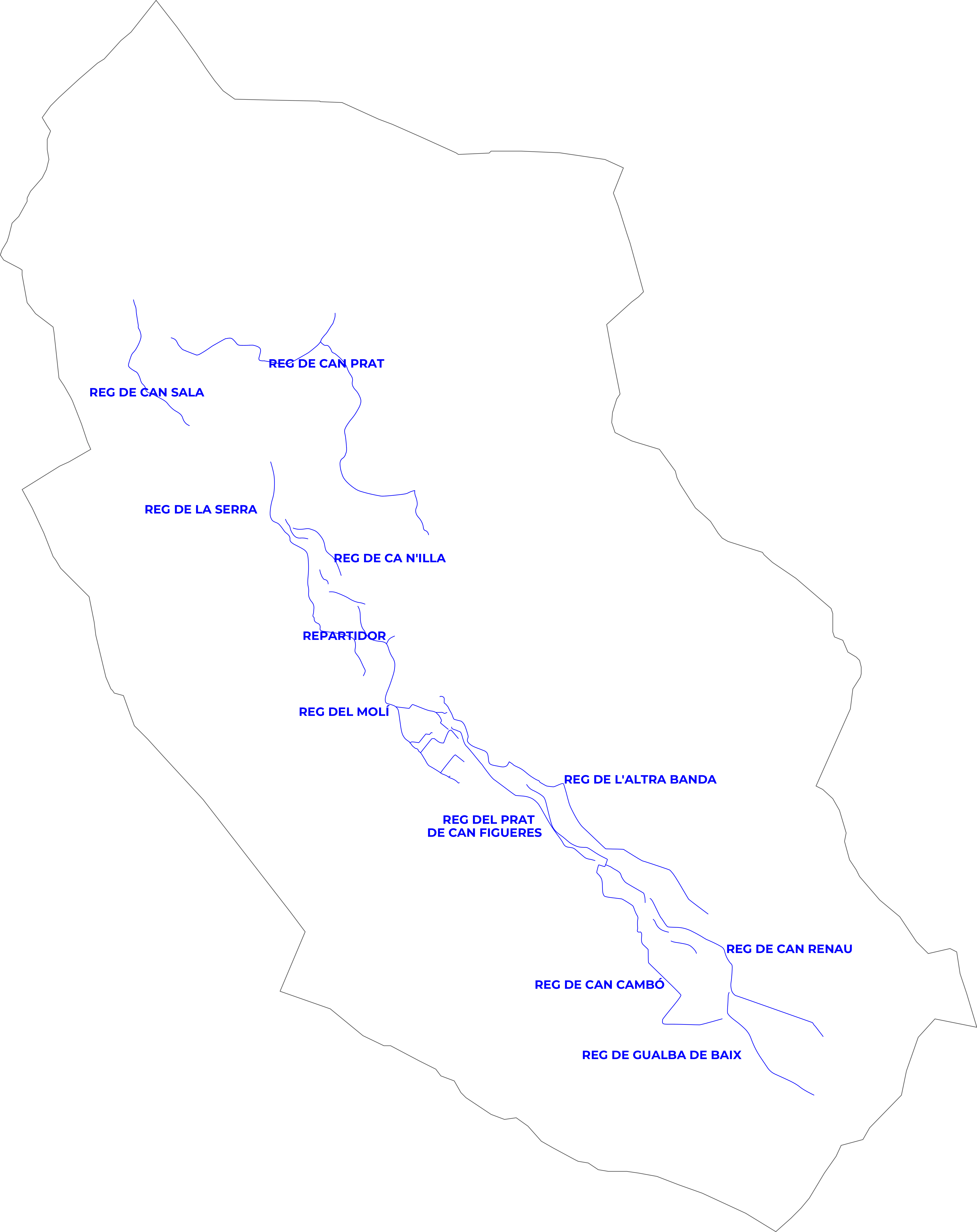 Les sèquies principals discorren paral·leles a la riera, captant l'aigua per gravetat a partir de petites preses de pedra seca. De cada sèquia principal en deriven braços secundaris que arriben fins als horts i camps individuals. Avui, molts d'aquests canals estan parcialment abandonats o substituïts per conduccions tancades, però la traça original es pot seguir clarament sobre el mapa.